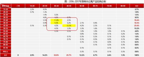 根据相关数据统计,2016-2017年6月,郑州市公寓产品总价段集中在30-50万元,产品面积段集中在35-50㎡,可见小面积、低总价的公寓产品较易被购房者所接受。