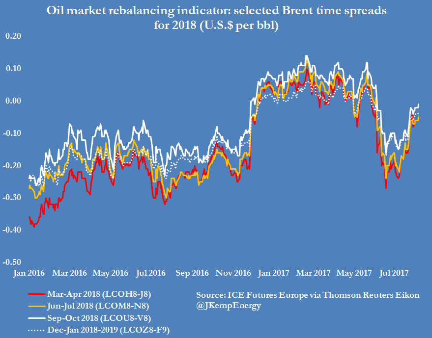不过,随着油市从2014/15年的供给过剩转为2017/18年的供给不足,期货溢价收窄。