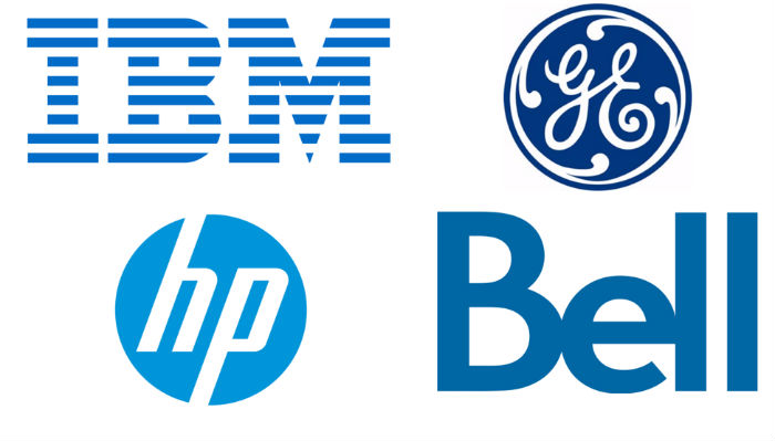 举个例子,科技公司的logo里,蓝色随处可见:IBM、Bell、通用电气、惠普还有英特尔。他们都是科技领域的大“英雄人物”。