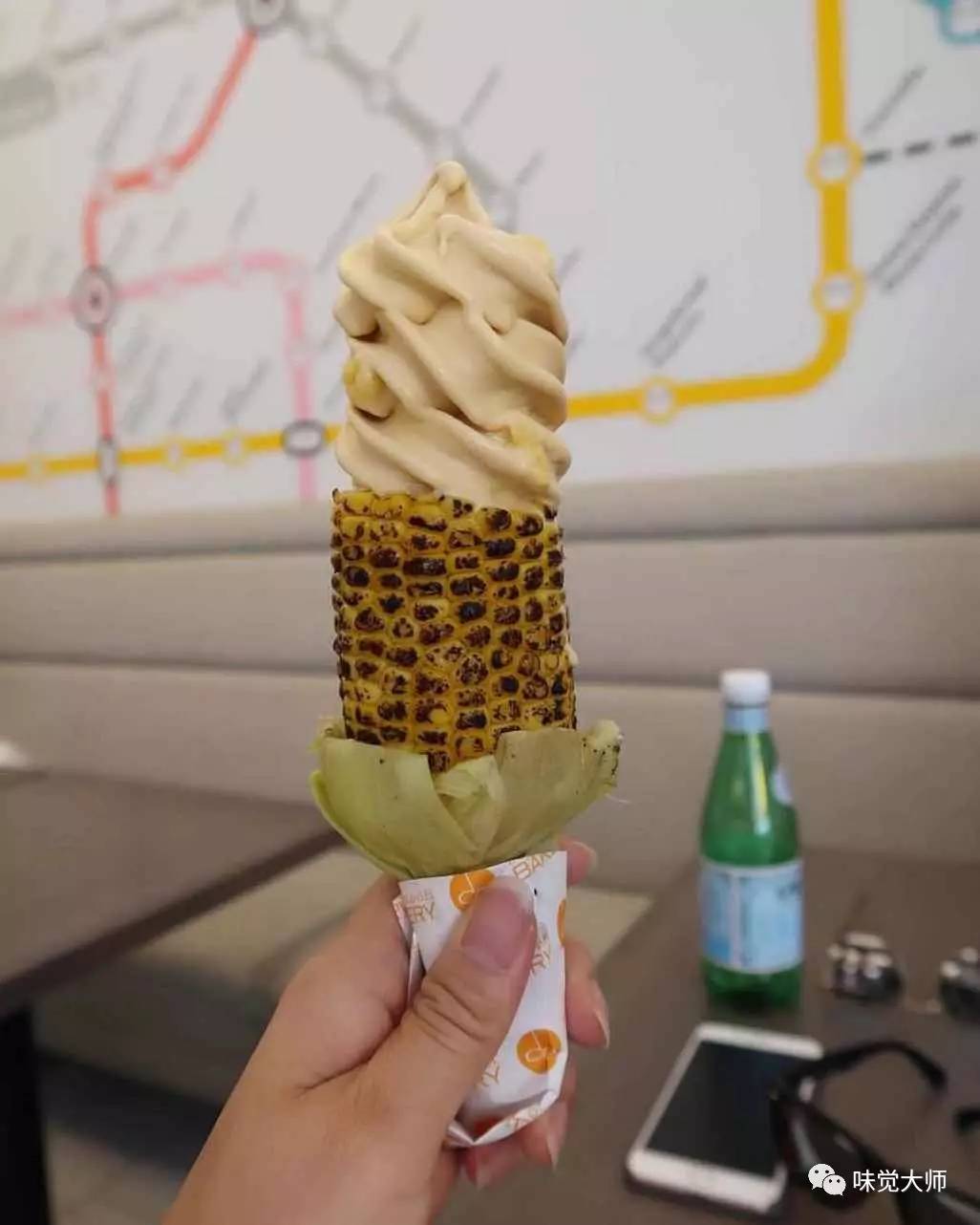 冰淇淋的底部是表面涂上黄油和酱油烤好的玉米,上面直接是焦糖甜玉米冰淇淋,不但有浓浓的玉米香味,还能吃到一颗颗玉米粒。