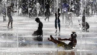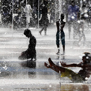近日,南京持续高温天气,小朋友在南京老门东景区的喷泉中戏水玩耍,享受清凉8月7日,我国迎来二十四节气中的立秋。不过,目前仍然处于“三伏天”之内,8月11日入“末伏”,8月21日才能“出伏”。在不少地方,暑热一时难消,高温仍在持续。