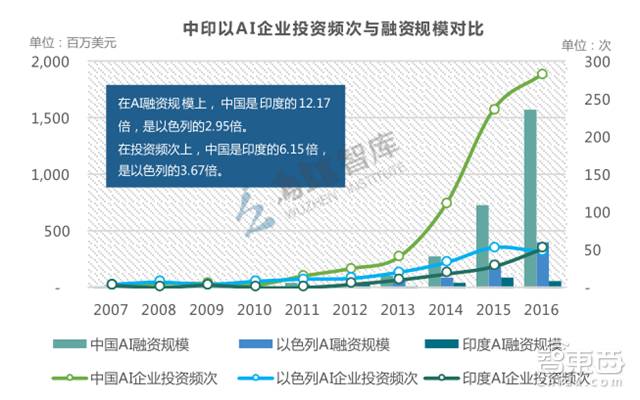 自2000年以来,中国新增AI企业数1477年,其中1074年为近五年新增,直逼老美;企业融资规模27.6亿美元,近五年达26.9亿美元;发起投资720次,近五年691次。其中,2014-2016年三年里新增的人工智能企业数量占累积总数的55.38%,融资规模占总数的93.59%。