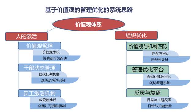 基于价值观的管理优化,实际上就是通过企业文化的落地,在人的激活上和组织优化上产生动能与绩效。目前在几家大型企业文化落地的实践中,其效果越来越为企业家所认可。