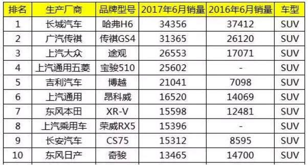 从SUV销量前十名来看,长城、广汽传祺雄踞榜首,而上汽大众则是排行榜老将,稳稳当当端坐前三。