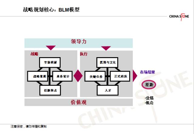 这是一套非常系统的思考方法,对企业战略的制定具有重大的价值。这一过程本身并不存在什么特殊的奥秘,但它通过了对“同一种语言”的运用,使大家能够迅速地理解对方的意见和建议,有利于快速地达成对战略的共识,并最终形成整体的决议。同时,运用逻辑的力量,能够使前后对应。具体地说,就是指针对差距提出关键任务,并将其落地执行的过程。