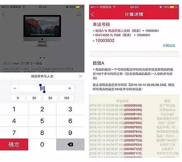 一元购其实就是网站上把所有产品都拆分红一元一份。一个号码能够购买多份,最终由平台进行所谓的电脑随机抽取一个号码,即为中奖号码。一次性购买份数越多,抽中产品的几率就越大。也容易让用户产生一种错觉,1块钱就能抢到iPhone 7、单反相机、金条等价值数千元的产品。