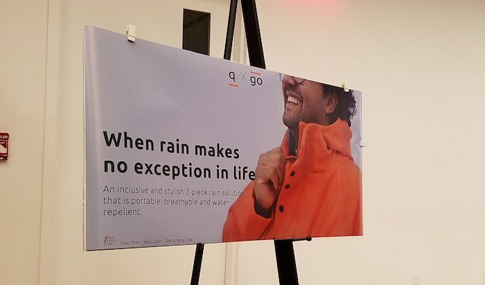 经过10周的比赛,设计雨衣的其中一组参赛者取得了比赛的胜利。他们的得奖理由是,他们充分解决到了被服务顾客在雨天坐轮椅时下半身及轮椅把手处容易被淋湿,从而舒适度不佳的问题。而更关键的是,他们的提供解决方案具有更大范围的推广价值,商业化前景不错。