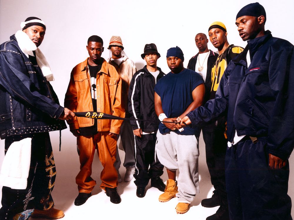 而来自东海岸的嘻哈说唱组合Wu Tang Clan(武当派),同样热爱松垮和肥大的衣服。相比起财大气粗的Snoop Dogg,代表年轻一代的他们更钟情于logo T、牛仔裤和工装夹克。在色彩选择和搭配上显得要青春多了。