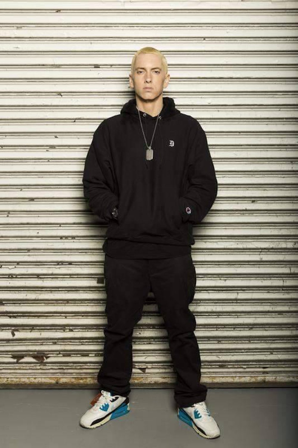 “随性痞气不松垮,清新简约又低调”,姆爷可谓是嘻哈圈子里的“小清新”。最为标志的就是他的金发寸头搭配各种帽子。早期的Eminem经常穿着背心T恤或者拉链帽衫演出。后来有了更多的搭配单品,比如运动夹克、T恤和鸭舌帽。