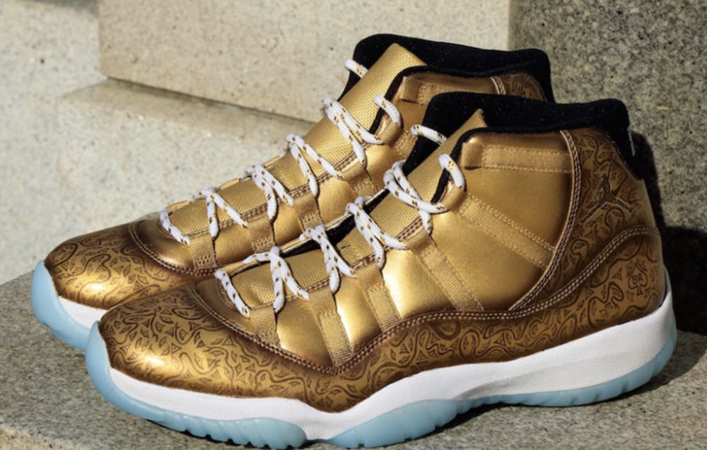 他还常常受邀替品牌做设计,比如这款金灿灿的Air Jordan 11 “Ace Of Spades”就出自他之手。
