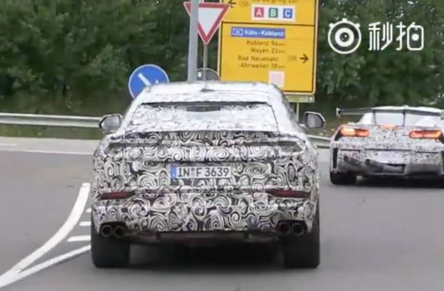 ▲近期在纽博格林北环进行测试的兰博基尼Urus量产版伪装车,前方还有一辆加长尾翼的科尔维特C7ZR1。