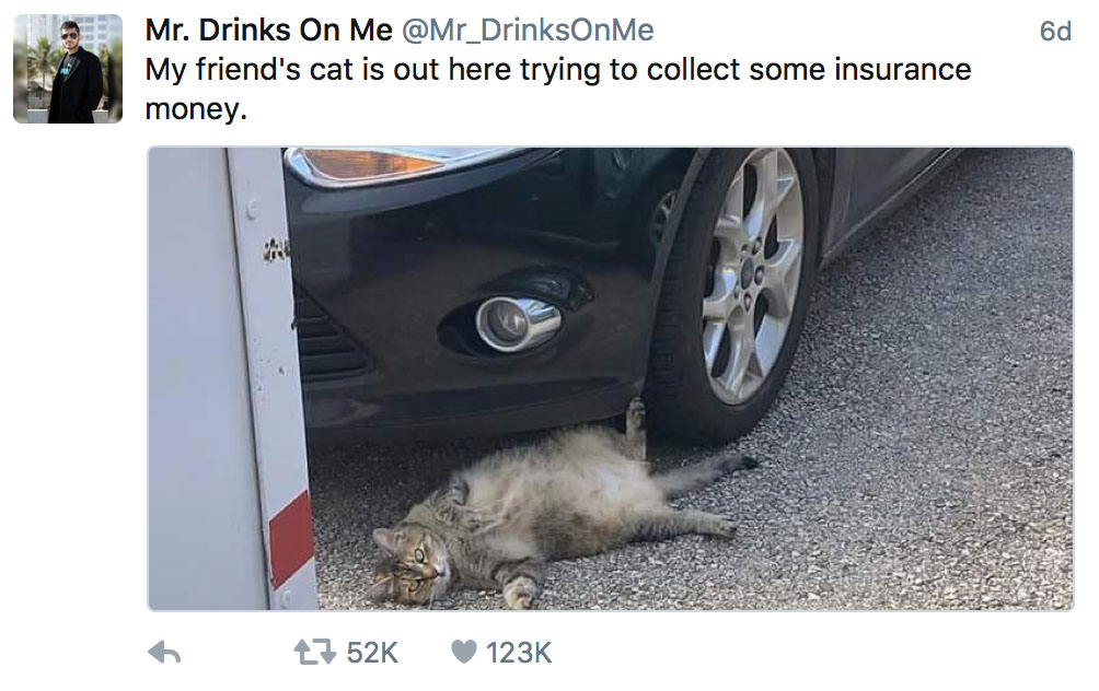 “我朋友的猫,躺在那里准备碰瓷。”