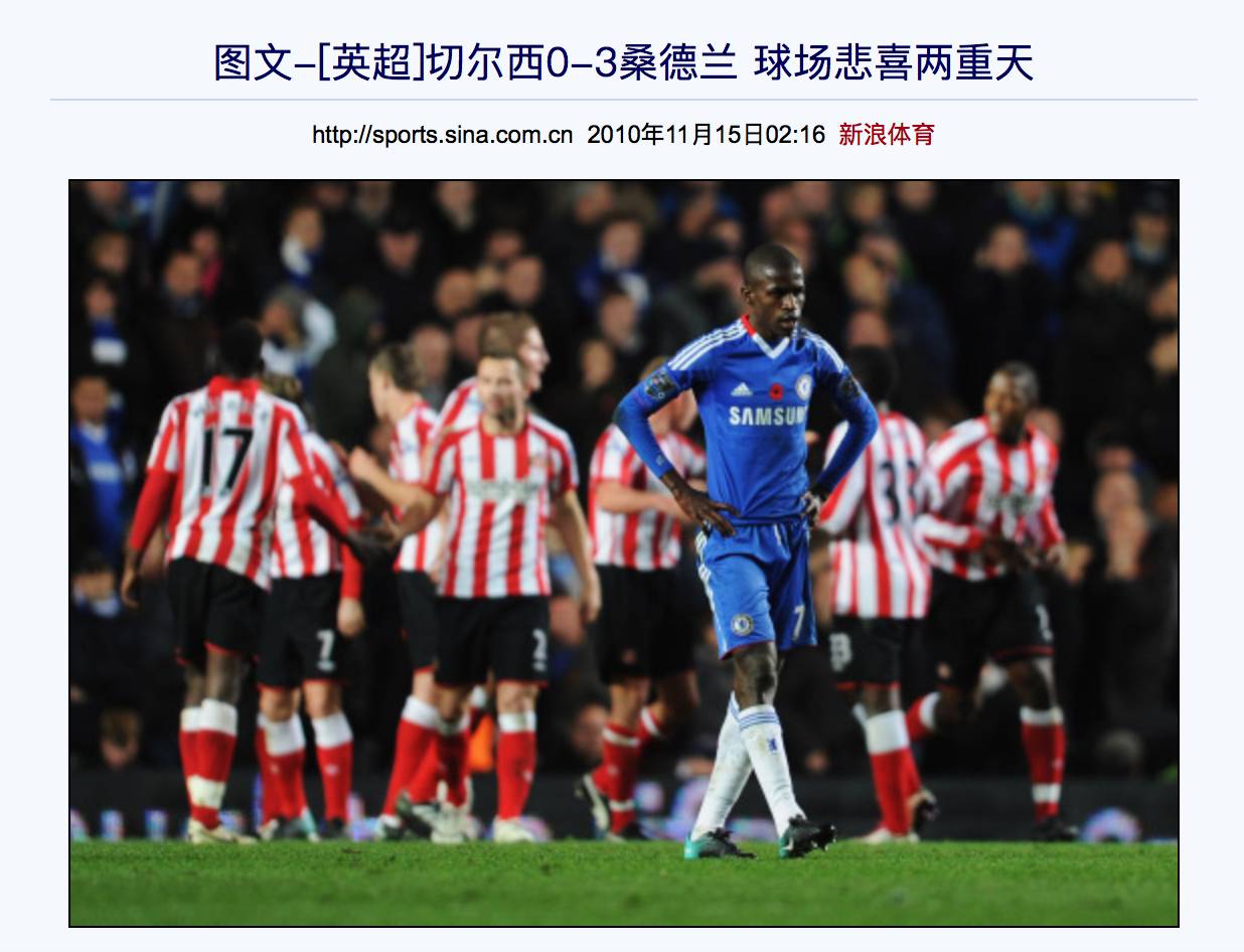 2010年桑德兰客场曾重创切尔西