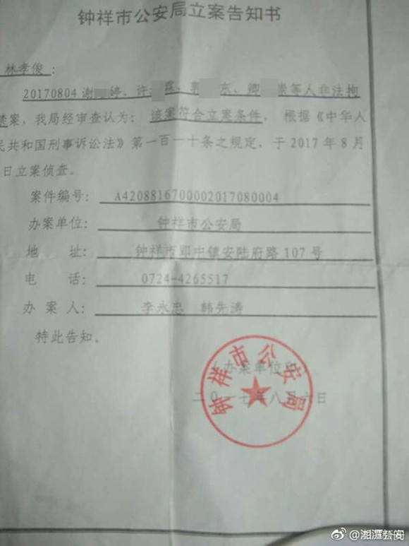 8月14日,钟祥警方对该案发布通报称,8月4日12时许,钟祥市公安局110接群众报警称,在郢中镇孔庙村直河水面有人落水。