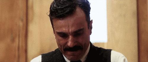 《血色将至》里有一幕是神父逼主角跪着承认自己的罪恶,我不知道你看过电影没...结尾的时候他爆发了,大喊大叫,这其中的转变真的很有趣...他本来是不想这样做的,于是把怒气全部发泄到那个逼他做这件事的人身上。