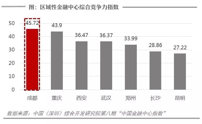 根据2016年中国(深圳)综合发展研究院发布的第八期中国金融中心指数显示,成都金融中心综合竞争力45.72,排名居中西部第一、全国第五。