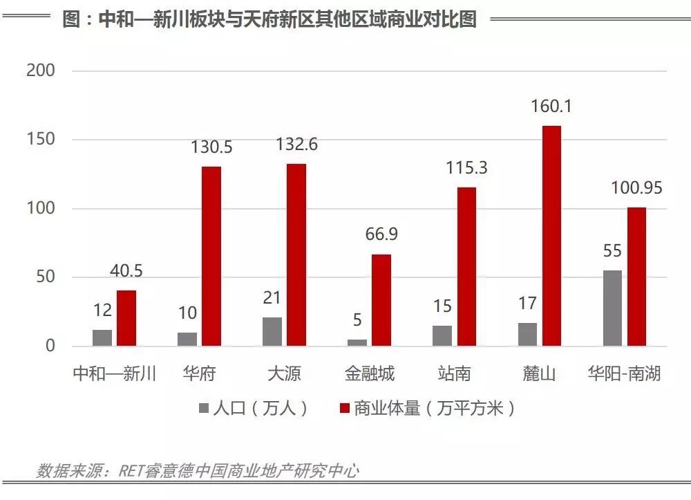 目前,万科、龙湖、融创、华润、中德等品牌开发商纷纷入驻新川,新川房价、地价一路飙升。据规划,该区域居住人口12万人,就业人口12至15万人。但目前商业总供应量仅有40.5万方,已有商业供应11.1万方。比起天府新区其他区域,商业供应相对较少。