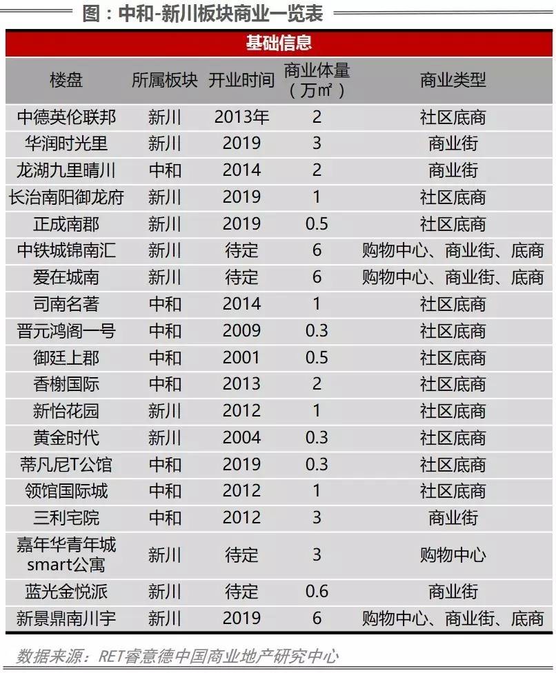 从目前中和—新川板块呈现或规划的项目来看,在40.5万方的商业供应量中,社区底商、小型商业街占据多数,仅有中铁城锦南汇、新景鼎南川宇、爱在城南三个较为大体量的商业配套规划,且三个开发商的商业运营能力有待经历市场的检验,整个区域缺少地标性商业项目激活区域人气、带动区域发展。
