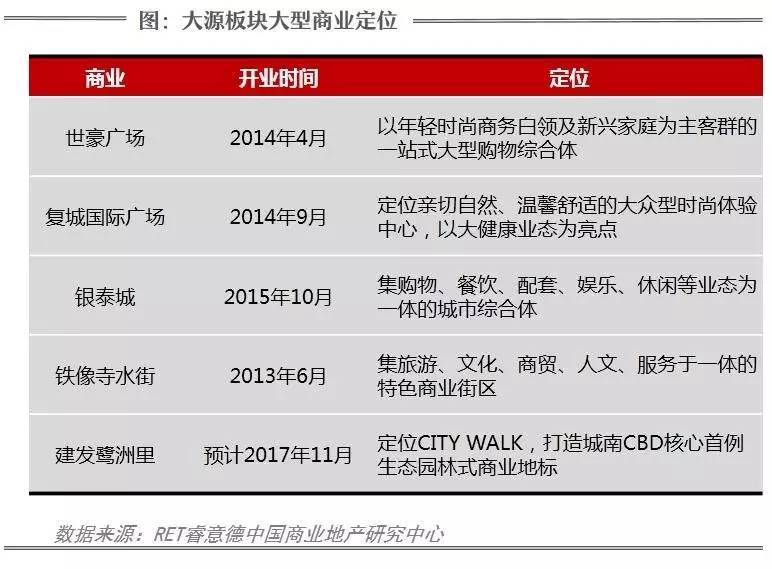 虽然大源板块内有世豪广场、复城国际广场、银泰城、铁像寺水街等大型商业,但是从定位来看,目前还未出现以社区商业为主的项目。