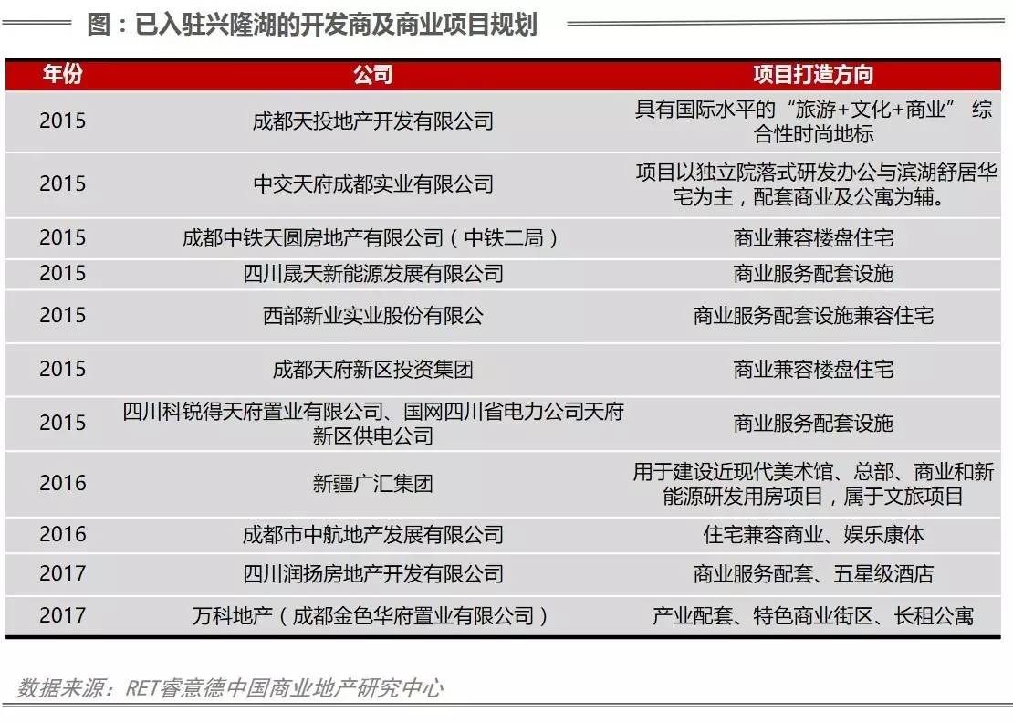 同时,从2015年起,开发商便纷纷布局兴隆湖,规划打造各类商业项目,兴隆湖板块商业格局初显——未来的兴隆湖将是天府新区商业形态最多元化的区域,兴隆湖板块是天府新区重要的商业和产业集中区域,会展经济、旅游经济和综合商业的群集效应会在几年后全面体现。