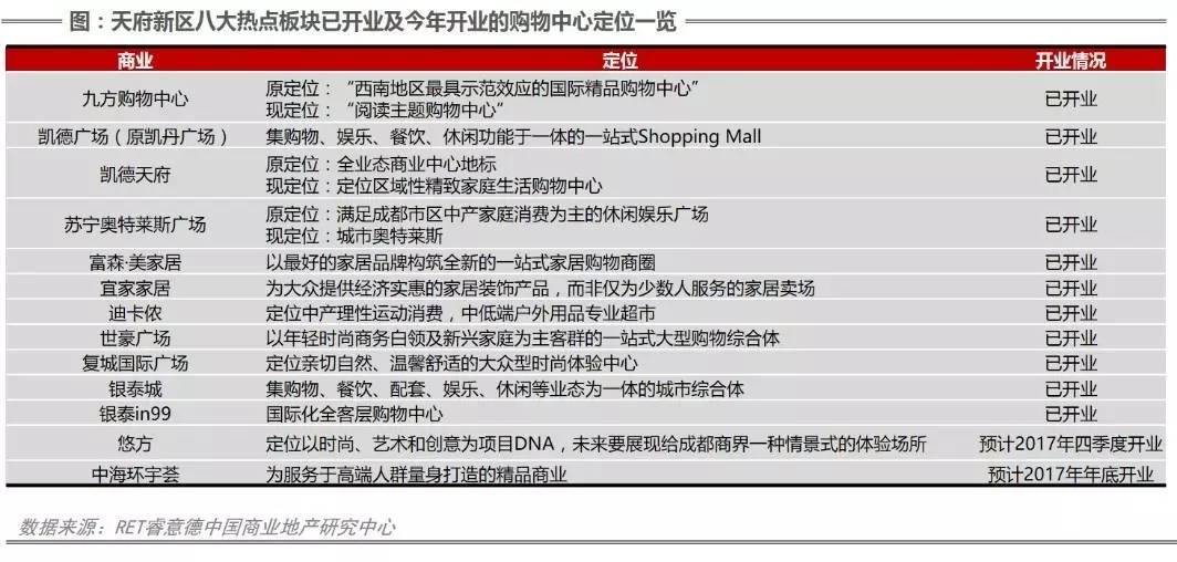 天府新区购物中心总体量占成都总体量一半 区域成熟度差异导致购物中心分布不均