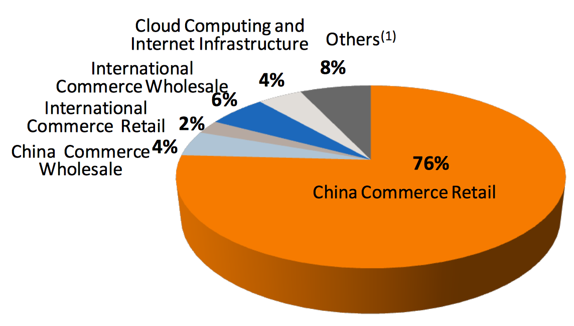如果说阿里必须要从它B2C的零售业务和B2B的批发业务中选择一项,毫无疑问地,阿里会选择B2C的零售,这部分业务在它2016年收入占比76%,而B2B的批发业务则只有4%。