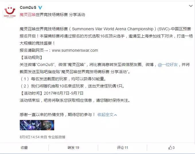2017年下半年,Com2uS即将举办“魔灵召唤世界竞技场锦标赛”,中国区预赛报名已经开启。此外,Com2uS还计划研发一款基于此IP的MMO新游,并将其打造成电子竞技游戏。