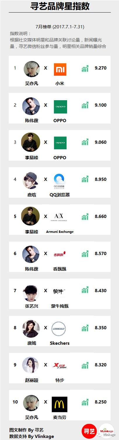 品牌方请明星代言,说到底还是借力明星的影响力,提升品牌形象和销量。我们监测了艺人品牌营销价值之后发现,近期对代言品牌综合影响力提升最大的品牌营销案例如下: