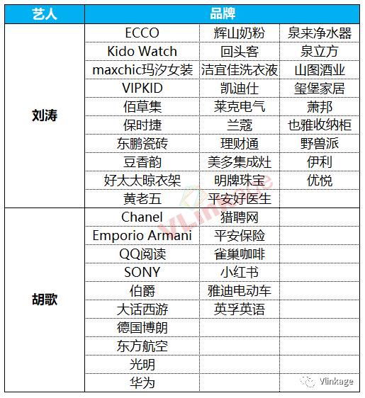 从整体来看,这些艺人大多都是高流量明星,看来在品牌方的眼里,流量明星的话题体质和粉丝数量具有强大的吸引力。然而,在榜单里也有不一样的风景,比如位居榜首的刘涛,近年来凭借多部有影响力的作品和综艺节目频频在荧屏出现,颇具亲和力的她以国民级的“脸熟”度打败了流量明星们,拿到数量最多的代言。有趣的是,近两年鲜少有作品面市的胡歌,凭借着《伪装者》和《琅琊榜》的余热,以及几乎无差评的公众形象,占据榜单第六名。看来,在品牌方眼里,超强的国民认知度和强大的个人魅力也是他们选取代言人的重要考虑元素。