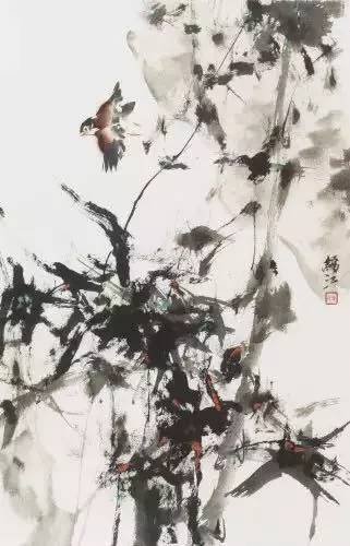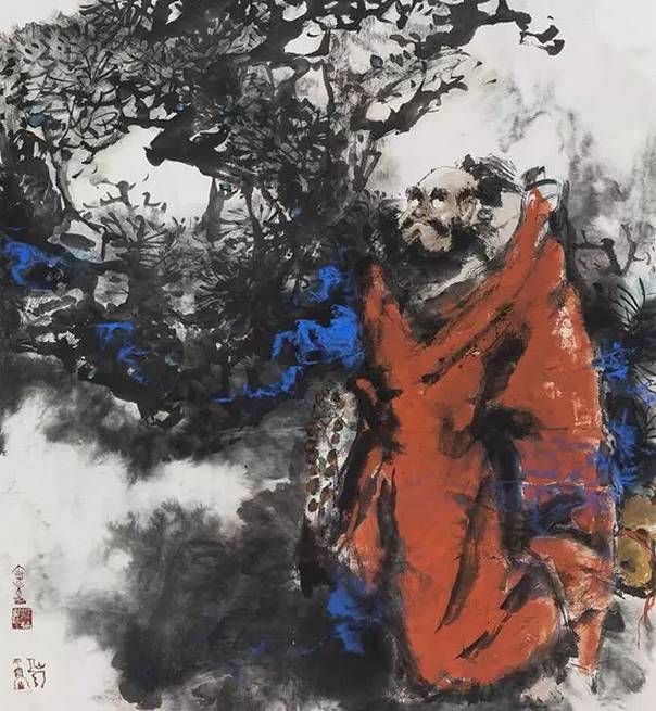 有一幅名为《虬松劲罗衫湿》的水墨画,
