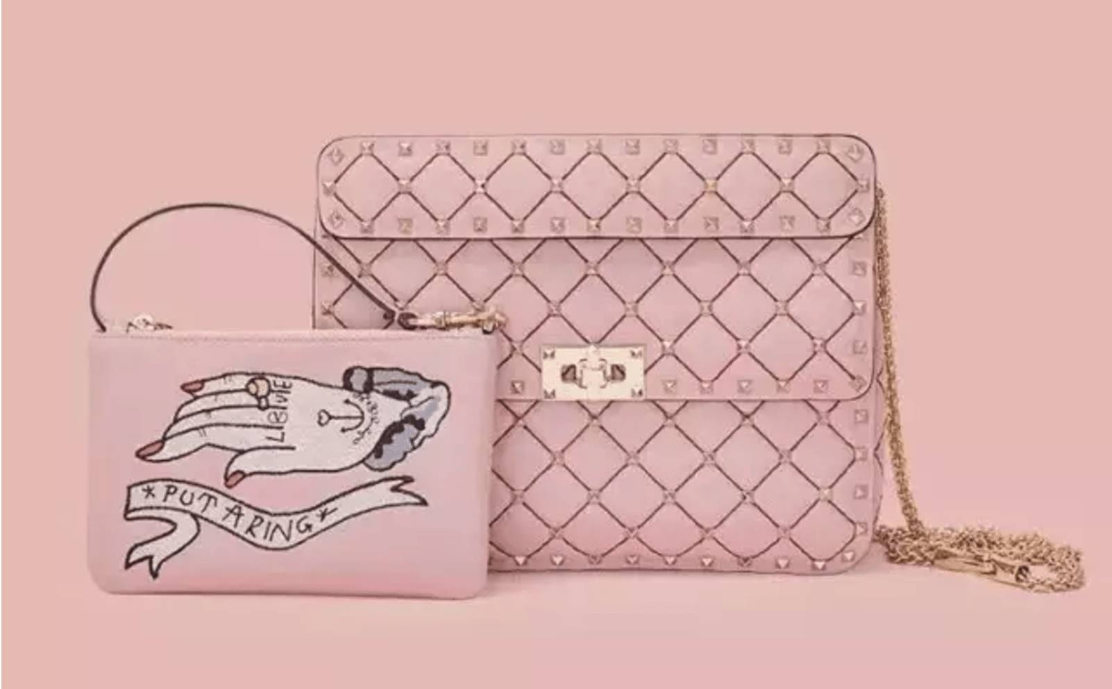 8月9日,Valentino率领这场比赛,成为今年第一个在微信提供情人节惊喜的奢侈品牌。特别奉上Rockstud Spike包,售价18,800元(2,808美元)。Valentino邀请了许多中国名流,如许魏洲,王子文和范冰冰推广这款包。 Valentino在北京的SKP购物中心的新精品店展出了“I Love Spike”展览,其中包括经典的Garavani Rockstud Spike手提包。从8月2日开始举办为其一周的展览。