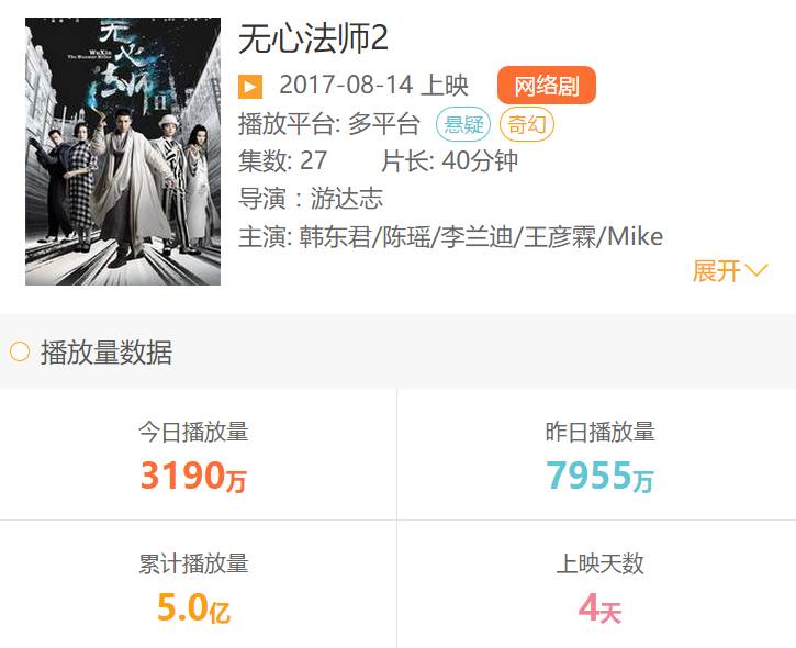时隔两年,《无心法师2》在观众的期待中回归,一经播出,就引来极高的关注度。截至发稿前,上线四天,累计播放量达5.0亿。