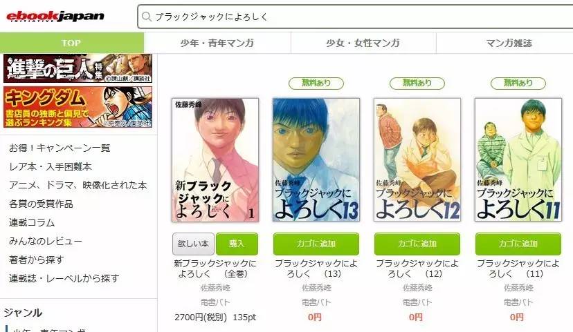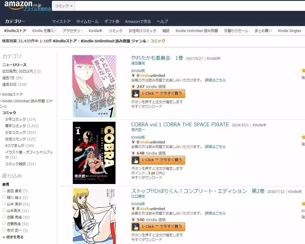 日本亚马逊电子漫画数量繁多,几乎是eBookJapan的两倍