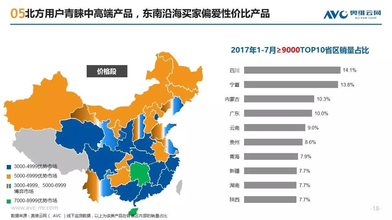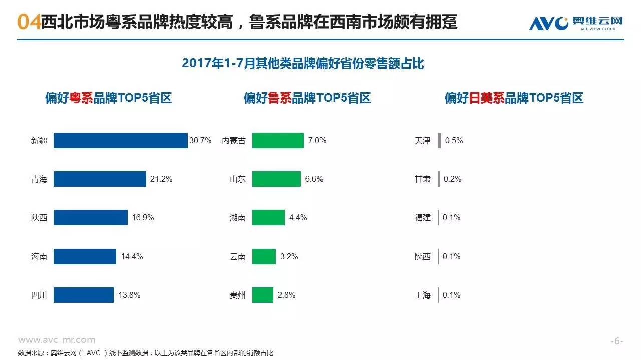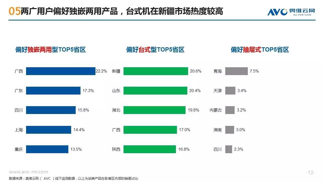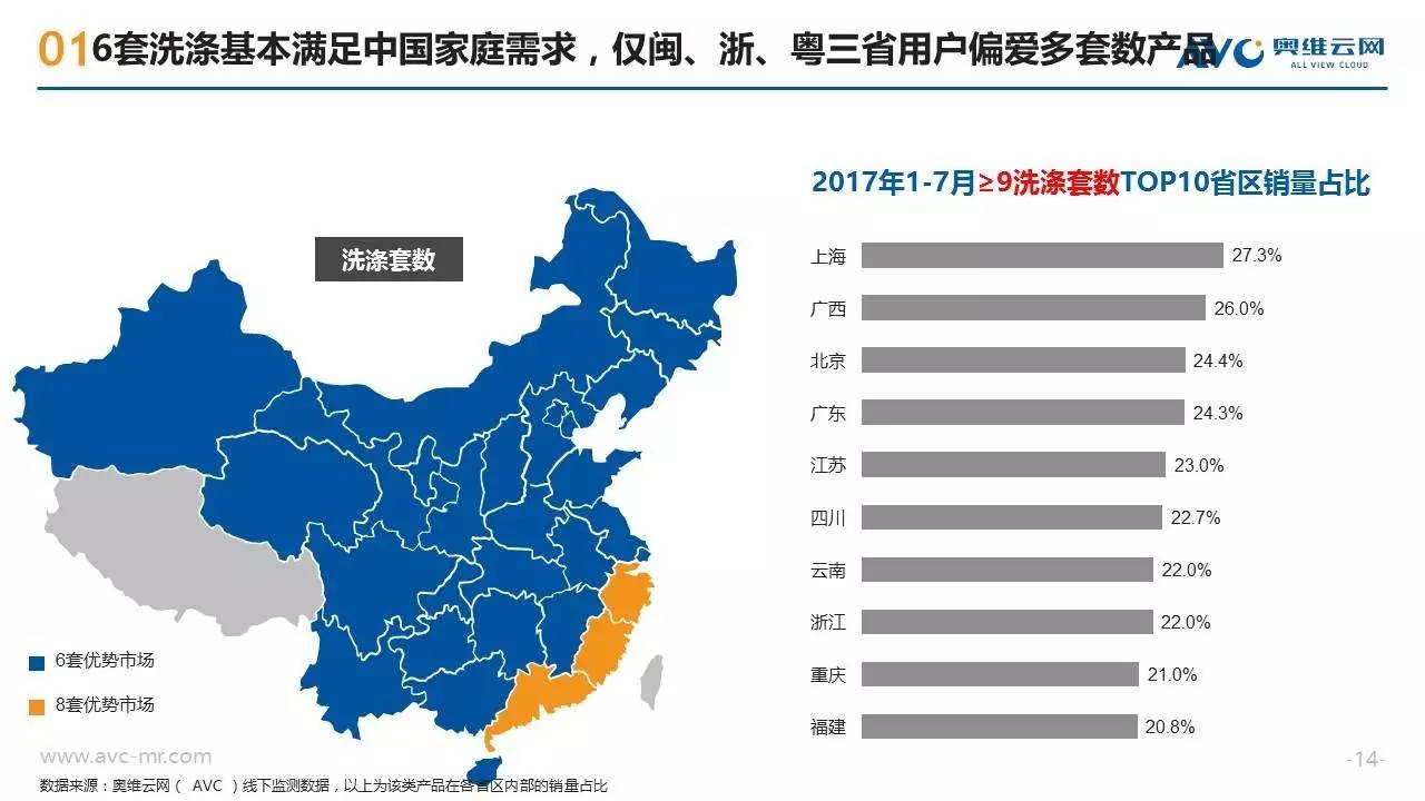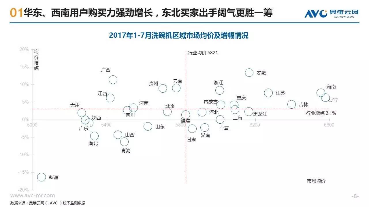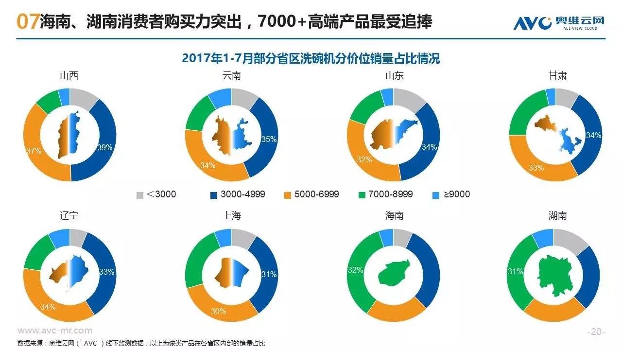 近年来随着消费需求的升级,洗碗机这种高端厨电产品开始越来越多的走入中国普通家庭,洗碗机也呈现出市场规模高速增长、产品技术持续迭代、竞争格局急剧变化的特征。作为一种新兴的“舶来”型家电,洗碗机在中国消费者心目中仍属于认知度较低的产品,不同地区的消费者在购买洗碗机时也往往呈现出强烈的地域性消费特征。奥维云网基于线下监测零售大数据,从品牌偏好、款式类型、性能指标三个方面,揭示不同地域的买家们对洗碗机产品的购买特征。