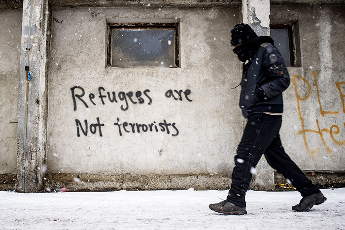 5. 2017年1月8日,一名移民在贝尔格莱德主要火车站附近迎着大雪行走,当地气温骤降到零摄氏度以下。据当时数据显示,约有7000名移民滞留在塞尔维亚。大批难民持续不断涌向欧盟,作为难民潮巴尔干通道的最后一站,塞尔维亚压力极大。在这里过境或滞留的难民之多,已远远超过其收容能力。为避免出现人道主义危机,缓解滞留难民激增引发的难题,塞尔维亚政府正在呼吁国际社会给予帮助,尤其是欧盟的积极介入。