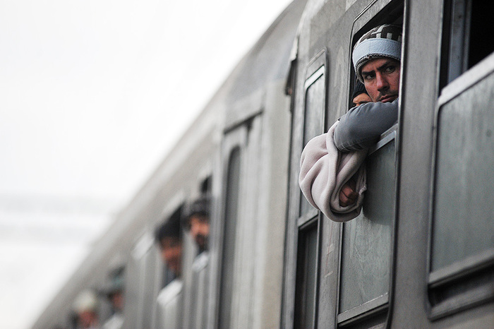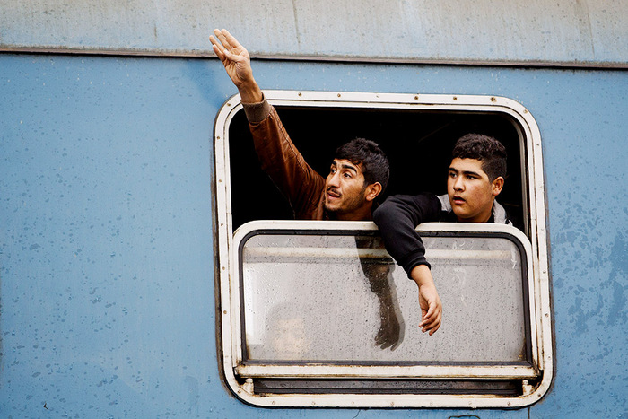 6. 2015年10月21日,移民和寻求庇护者在克罗地亚东部的托瓦尔尼克镇乘坐火车前往斯洛文尼亚境内,并计划继续前往西欧国家的路线。1500多名移民在穿越塞尔维亚-克罗地亚边境后,登上了火车。几个月内,数十万人——许多人为了逃离叙利亚、非洲和阿富汗境内暴乱——计划从土耳其到巴尔干地区,希望到达德国、瑞典等欧盟国家。克罗地亚向难民开放了与塞尔维亚的边境,为数千名争取北上的难民打开了通道。