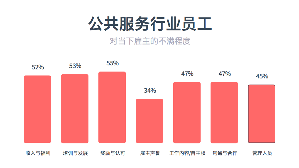 公共服务和零售餐饮服务行业的雇主满意度较低
