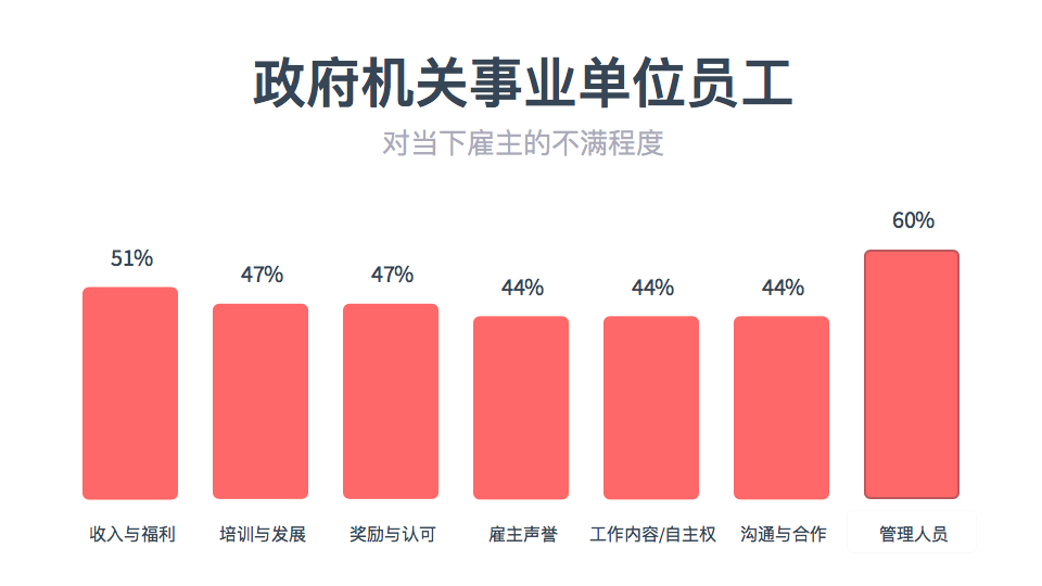 从企业类型来看,民营企业和政府机关事业单位员工是对雇主最不满的群体。