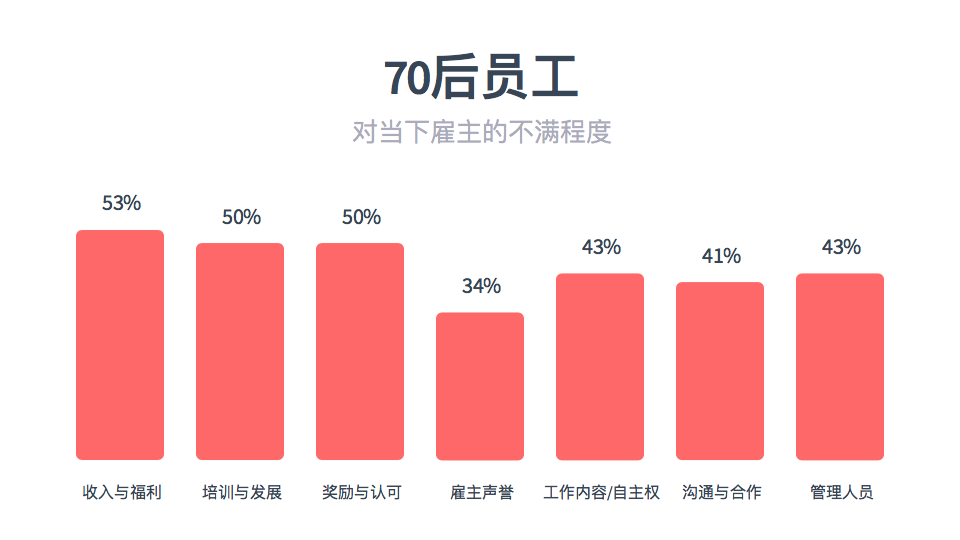 结果显示,80后、85后员工不仅是职场中坚力量,也是对雇主最“无欲无求”的群体。