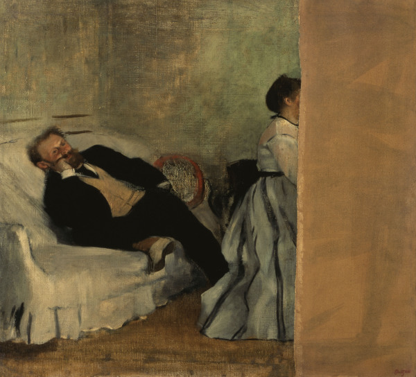 斯密:你讲的这点非常重要,尤其是对于肖像画而言。当历史步入现代,关于另一个人,肖像画究竟可以传达什么,开始变得不确定。我们究竟是否能真正了解另一个人,又是否能够在画布上再现一个人,这一切的答案都变得不确定,这是一种非常现代的感受。对于这个问题,站在现代主义开端的马奈和德加给出的答案非常不同。在马奈看来,真实是变化不定、多种多样的,因此他总是将画中的人物盛装打扮,以表现个体身份的不确定性,从而掩藏每个人不同面具之下的未知。而德加对于真实的理解则恰恰相反,他总是想要穿透表面,直击真相本身。