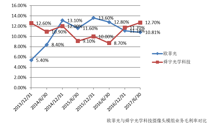 而在去年以来摄像头行业数量及质量同时提升以及双摄方案大行其道的背景下,舜宇凭著双摄的先行者优势和较大的规模体量,弥补了策略上的短板,两家公司的摄像头模组业务毛利率于2016年下半年再次出现了交叉。