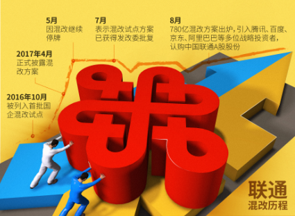 去年10月10日,中国联通被列入首批国企混改试点,确定其国内A股上市公司作为混改主体。