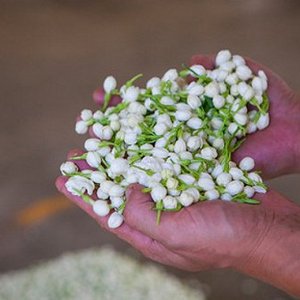 2、鲜花处理:茉莉花的品种很多,优劣各异,经过无数次的尝试后,人们发现只有单瓣和双瓣茉莉最适合窨制,并以中午到下午采摘的品质最好,且必须是含苞待放的花蕾。鲜花在采收、运输及进厂后,要严防掀压损伤和发热,才能完成窨制过程的释香。