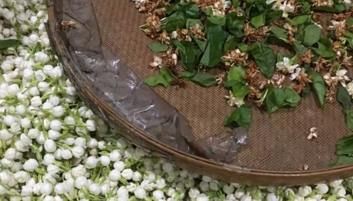 4、静置窨花:创造一个适合于茉莉花正常释香的环境。随着窨次的增多,可逐渐减少静置时间。