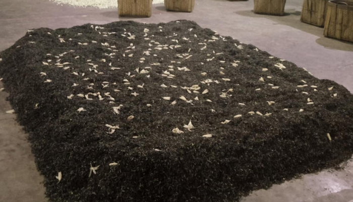 提花后不再烘焙,经摊凉后即可匀堆装箱。但在这个过程中茶叶很容易水分超标,所以非经验丰富的老师傅不可,否则前面的所有努力都付诸东流。
