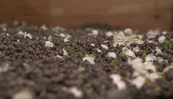 通过开窗、风扇灯保证外部空气流通的同时,利用人工不断将茶叶堆分堆、流出散热通道来,但翻动时不能伤到花。通花若不及时,就会导致鲜花受热闷死,产生水闷味,直接影响成品茶的香味的鲜浓度。