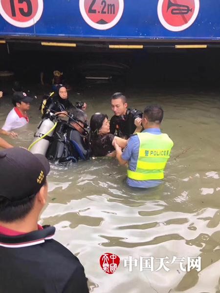 珠海两名市民被困,潜水爱好者自发组织救援。(图片来源:中国天气网)