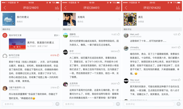 丁博:我们经常在想怎么才能让音乐有生命、有故事,我们比较注重的是一块是评论,评论能够在很大程度上调动整个社区的氛围。我之前做媒体,我们经常说做一个好的新闻报道,就是要把新闻事件化、事件故事化、故事人物化、人物命运化等等,其实就是让你的东西能越来越好看、越来越贴近大众。