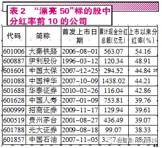 虽然每股股利连续7年蝉联榜首,但我们也可以再看看其他“漂亮50”们上市以来的累计分红情况,其实派发现金最高的并非贵州茅台,而是“超级大鳄”工商银行,自2006年上市以来,公司已累计现金分红5500.04亿元。中国石油、中国银行、农业银行、中国石化、中国神华等A股“巨婴”,上市以来的累计现金分红额也全部在千亿元以上。当然,金融股素有低估值+高分红的特征,而且和这些超级大盘股相比,贵州茅台的量级小很多。那我们再来看看公司上市以来的分红率,在“漂亮50”标的股中,贵州茅台39.07%的分红率也并非其中之最,而是大秦铁路54.16%的分红率排在了首位,贵州茅台其实仅排在了第8位。