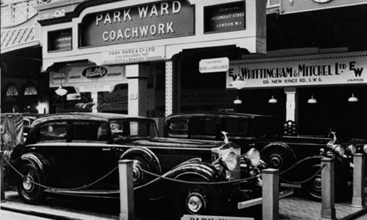 1933年,在奥林匹亚车展上展出的 幻影Ⅱ,从广告牌上可以看出,这批幻影 是由另一家车身制造商Pard Ward打造的。